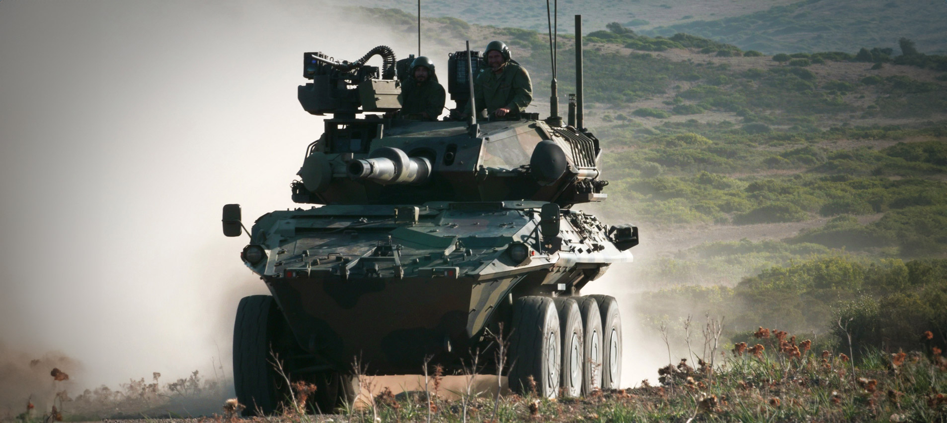 The third generation 120/45 mm gun (optional 105/52mm interchangeable to 120 mm), with integrated and stabilised low-recoil muzzle brake, provides the same fire power as most modern main battle tanks, with the capability of firing all latest generation 120 mm NATO APFSDS and multi-role MP munitions.